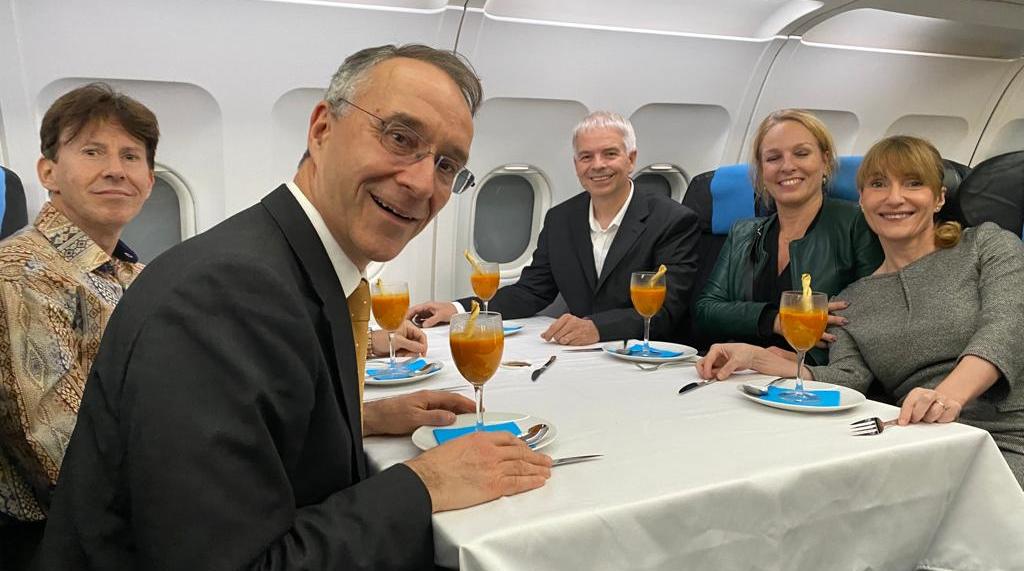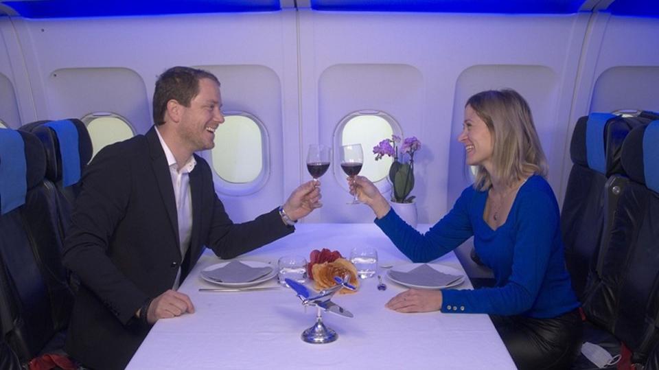 De cockpit is een vluchtsimulator. Maar wat een simulator! Een meeslepende